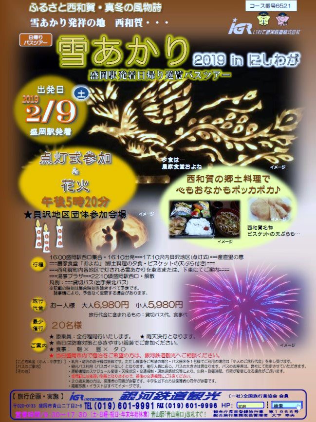 ¡ä¡Ú¶ä²ÏÅ´Æ»´Ñ¸÷¡Û2/9(ÅÚ)¤ËÀ¾Ï²ìÄ®¤Ç³«ºÅ¤µ¤ì¤ë¡ÖÀ㤢¤«¤êin¤Ë¤·¤ï¤¬¡×¤ÎÀ¹²¬À¾¸ýȯÃåÍ·Í÷¥Ð¥¹¥Ä¥¢¡¼(Æüµ¢¤ê)¤Î¼õÉÕÃæ¤Ç¤¹¡£¾ÜºÙ¢ª https://goo.gl/jiMeX7 ͼ¿©¹þ¤ß¡¦ÇÀ²È¥ì¥¹¥È¥é¥ó¡Ö¤ª¤è¤Í¡×¤µ¤ó¤ÇÀ¾Ï²ì¤Î¹¬¤òÌ£¤ï¤¤¡¢¹¤¤Ä®Æâ³ÆÃϤÎÀä·ÊÀ㤢¤«¤ê¤Î̾½ê¤ò½ä¤ê¤Þ¤¹¡£